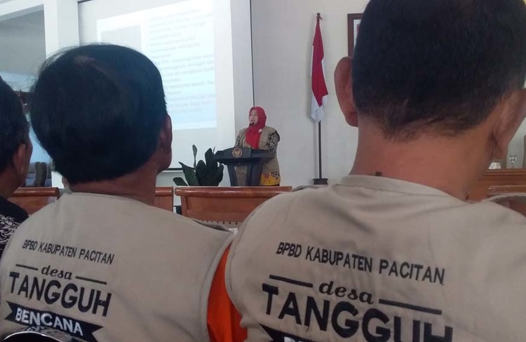 Pingki Hidayati, Kepala Seksi Kesiapsiagaan BPBD Provinsi Jawa Timur, saat seminar pembentukan Destana di Pendapa Kabupaten Pacitan Kamis (06/12/2018) (Istimewa)