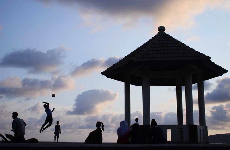 Aktivitas warga sekitar dan juga pengunjung Pantai Pancer Door, sembari menunggu senja, mereka menikmati indahnya pemandangan sunset di pesisir Pacitan. (Istimewa)