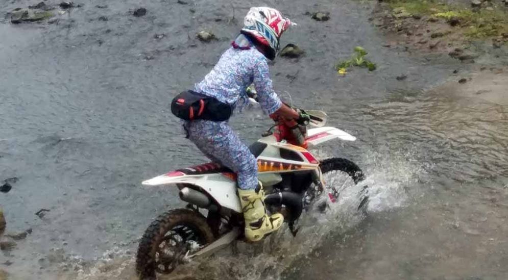 Ratusan sepeda motor itu meraung-raung menyusuri pinggiran sungai, menabras air hingga naik turun di medan ekstrem yang ada di sekitar Desa Kedungbendo. Beberapa dari mereka jatuh, tetapi segera bangkit lagi.