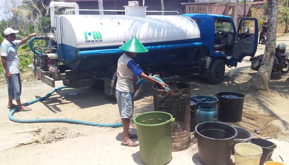Sebuah mobil tangki air yang membawa Suratno, salah satu petugas PDAM Pacitan kemudian berhenti di depan rumah salah satu warga Dusun Duwetan. “Air...air.. pada ngumpul' teriak Suratno lagi. Tak menunggu lama sejumlah warga berlarian dengan membawa ember, bak, drum dan dan sebagainya.