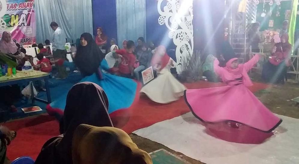 Halopacitan, Pacitan— Zuan Tsaqifa Tafa'ul Arjad, seorang siswi Kelas I di MI Guppi Jatimalang dengan tenang bisa melakukannya. Saat tampil membawa Tari Sufi dalam acara pameran yang digelar Stadion Citra Mandiri Kecamatan Arjosari Minggu (19/08/2018) malam, Zuan bersama dua temannya yang juga masih kecil pun memukau penonton.