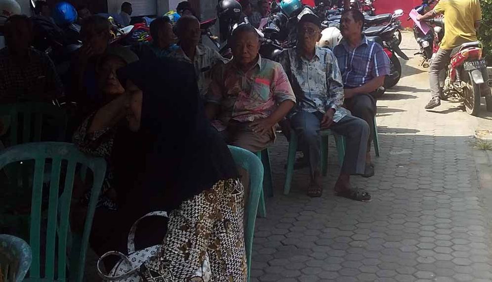 Halopacitan, Pacitan— Sejak pagi ratusan pensiunan PNS sudah antre di kantor BTPN yang terletak di Jl A Yani No 28 Pacitan. Tidak hanya untuk mengambil pensiunan bulan Juni, mereka juga sekaligus mengambil Tunjangan Hari Raya (THR) yang diberikan pemerintah.