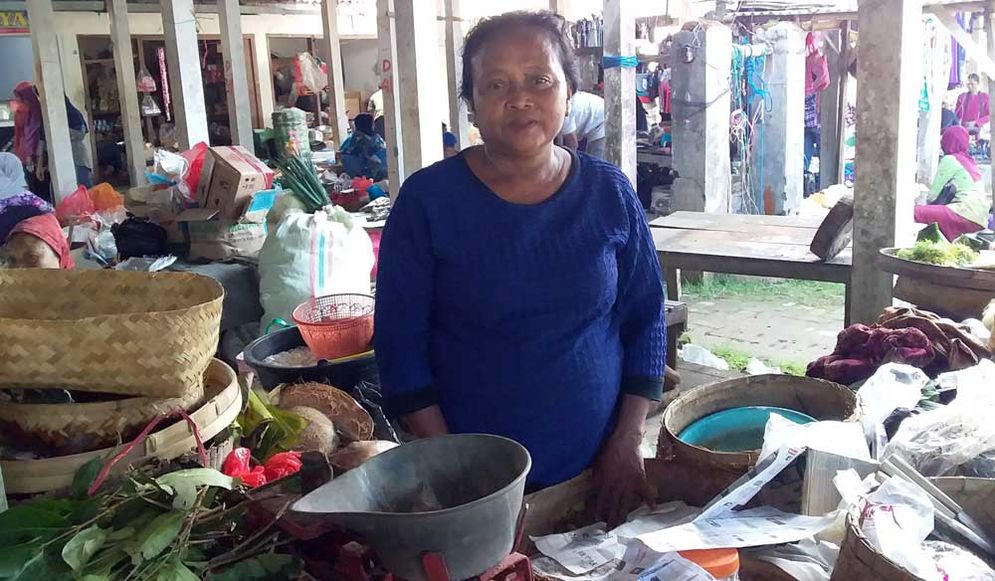 “Walaupun cuma untung Rp200-Rp300 ya mending saya jual ke pasar, di sana banyak pedagang dari luar kota, kadang juga berebut, ketimbang saya jual ke pengepul," kata Menik (47), petani dari Desa Temon saat ditemui halopacitan di pasar Arjosari. (Sigit Dedy Wijaya)
