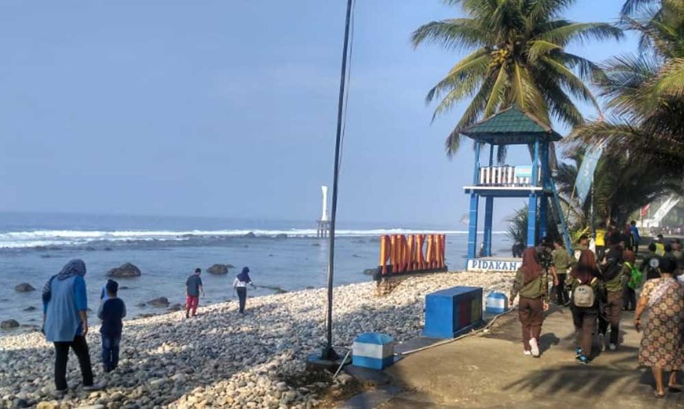 Peserta beach clean [bersih pantai] diikuti anggota pramuka, PMR, sekolah, karang taruna dan pengelola tempat wisata serta sejumlah komunitas lain.