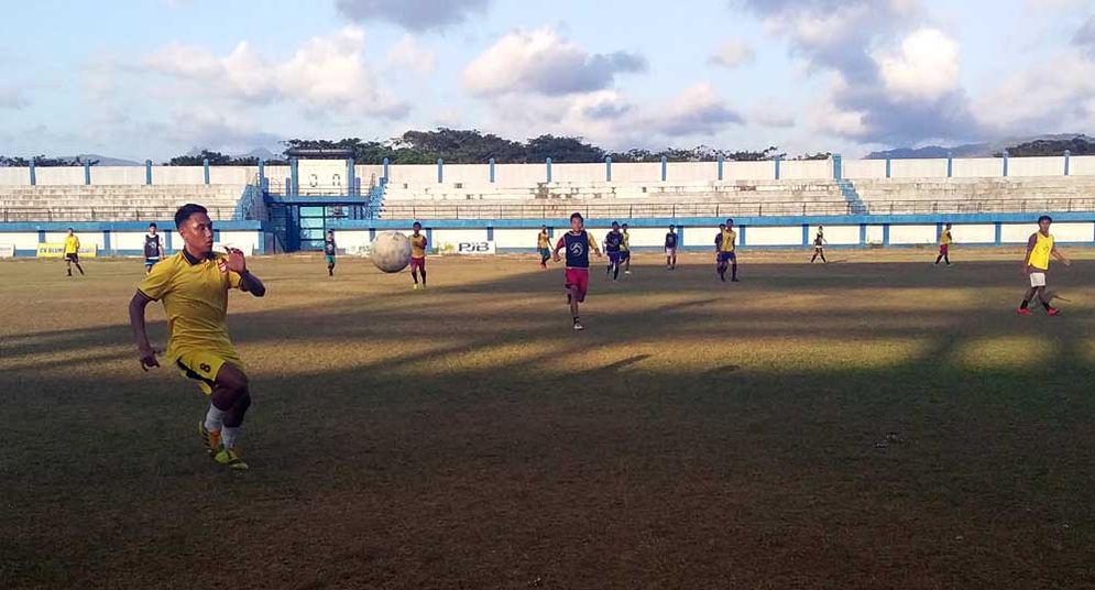 Halopacitan, Pacitan— Saat melakukan latihan di Stadion Pacitan pada Senin (09/07/2018), tampak para pemain Perspa serius dan fokus saat bermain,