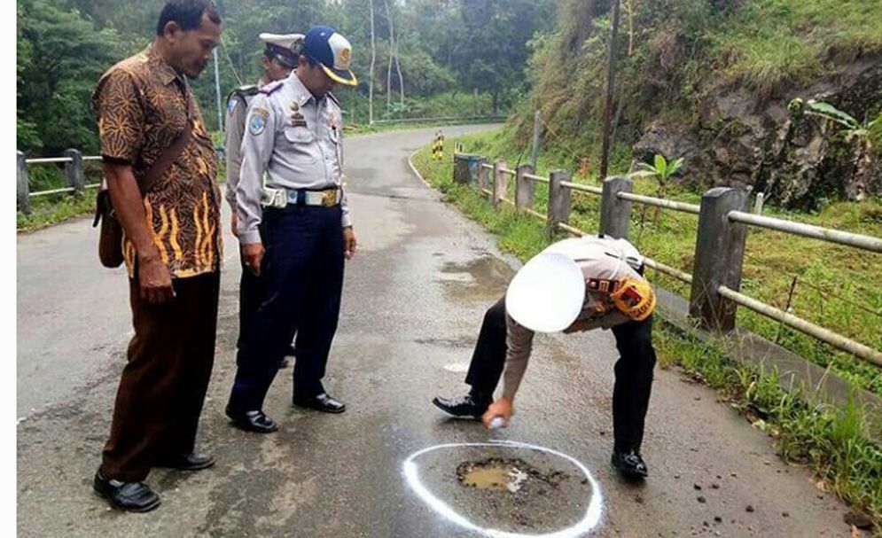 Halopacitan, Pacitan—Berdasarkan pantuan Satuan Lalulintas (Satlantas) Polres Pacitan bersama Dinas Perhubungan, Dinas Pekerjaan Umum, serta Polsek Tegalombo, banyak jalan berlubang yang ditemui di sepajang jalur perbatasan Desa Gemaharjo hingga Jl Tentara Pelajar.