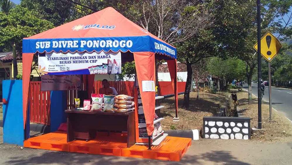 Halopacitan, Pacitan—Bertempat di sebelah pintu masuk gudang Bulog di Jalan W.R. Supratman, Kelurahan Sidoharjo Pacitan, Bulog sejak Senin (21/05/2018), menggelar bermacam-macam sembako, di antaranya beras premium, medium, gula, minyak dan juga tepung.