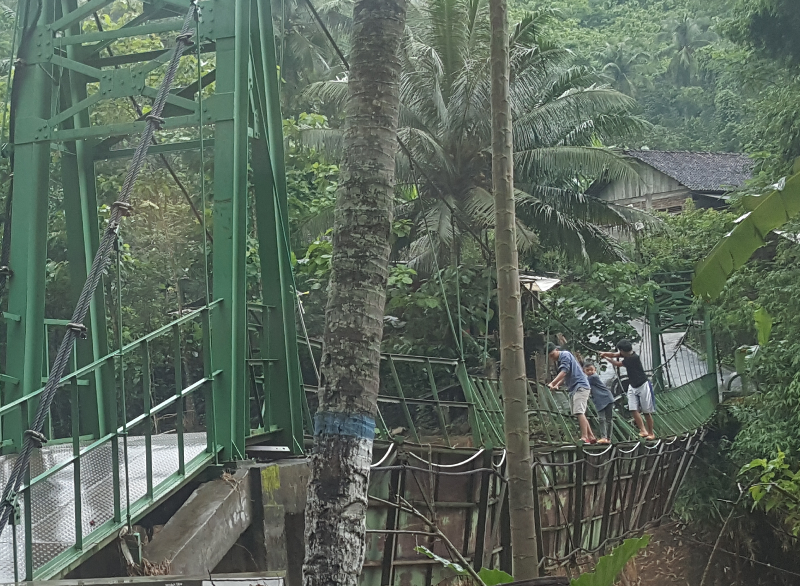 Untuk melewati sungai Grindulu, sejumlah warga terpaksa nekat untuk melalui jembatan yang putus di salah satu sisinya. Derasnya arus banjir sangat terasa dari hancurnya jembatan-jembatan rakyat yang dibangun secara swadaya itu.