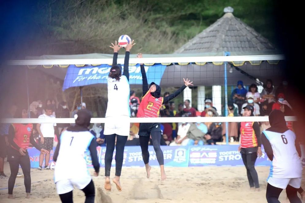 PACITAN-Kejuaraan Nasional (Kejurnas) Voli Pantai Seri 2 di Sirkuit Voli Pantai Pancer Door Pacitan menyelesaikan pertandingan.