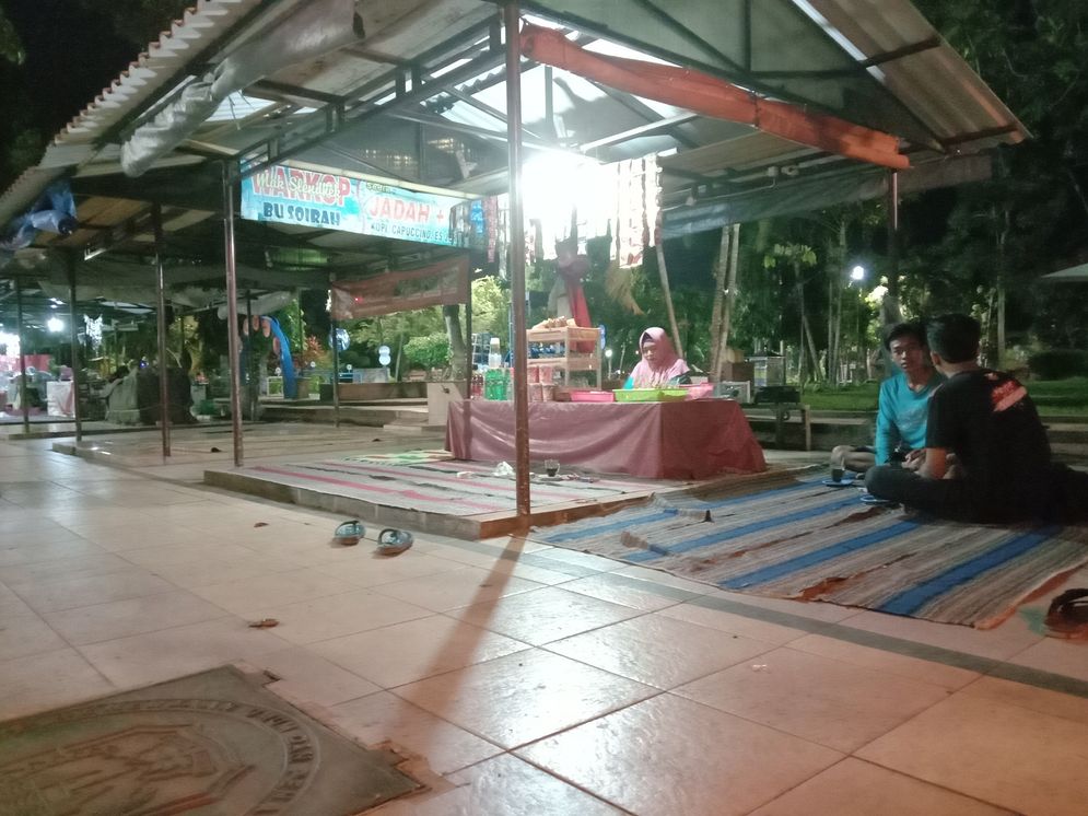 “Saya baru buka belum ada seminggu mas, paling baru 5 hari ini aktif lagi jualan. Sudah hampir 3 bulan tutup warung sejak wabah corona. Kemarin sempat jualan 2 hari sebelum lebaran. Waktu malam takbiran lumayan ramai meski jalan raya dan taman ditutup oleh pemerintah” tutur Lestari si penjual.