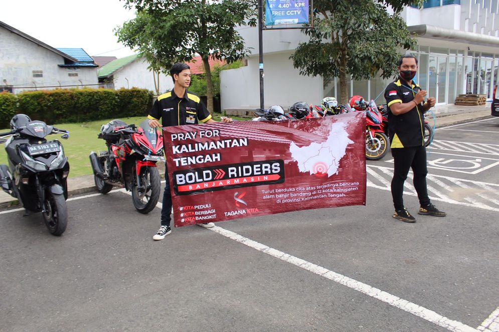 Bold Riders Banjarmasin dan Banjarbaru membutuhkan waktu lebih dari 8 jam untuk sampai ke lokasi korban banjir bandang di sejumlah wilayah di Kalimantan Tengah (Kalteng). Pengiriman bantuan sosial ini merupakan bagian dari kegiatan tim Tanggap Bencana (Tagana) hasil dari Kolaborasi Komunitas Indonesia Timur Area (KITA).