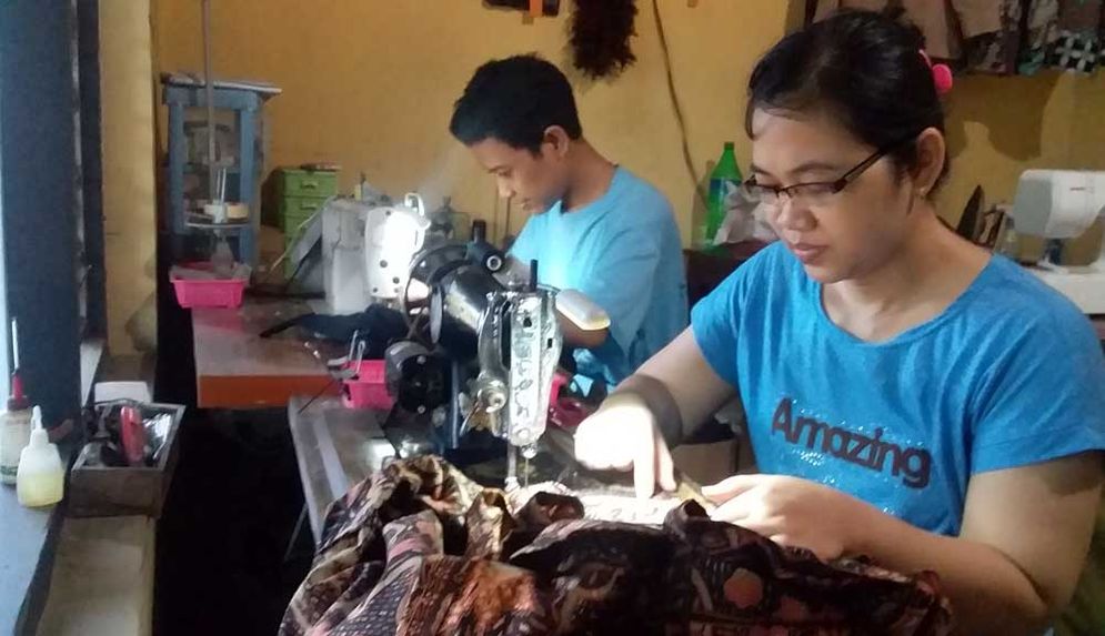 Mesin jahit elektrik terus berdesing menggerakkan jarum jahit dan benang dengan cepat. Tangan-tangan keduanya pun tampak cekatan menggerakkan kain sesuai pola yang dibentuk.