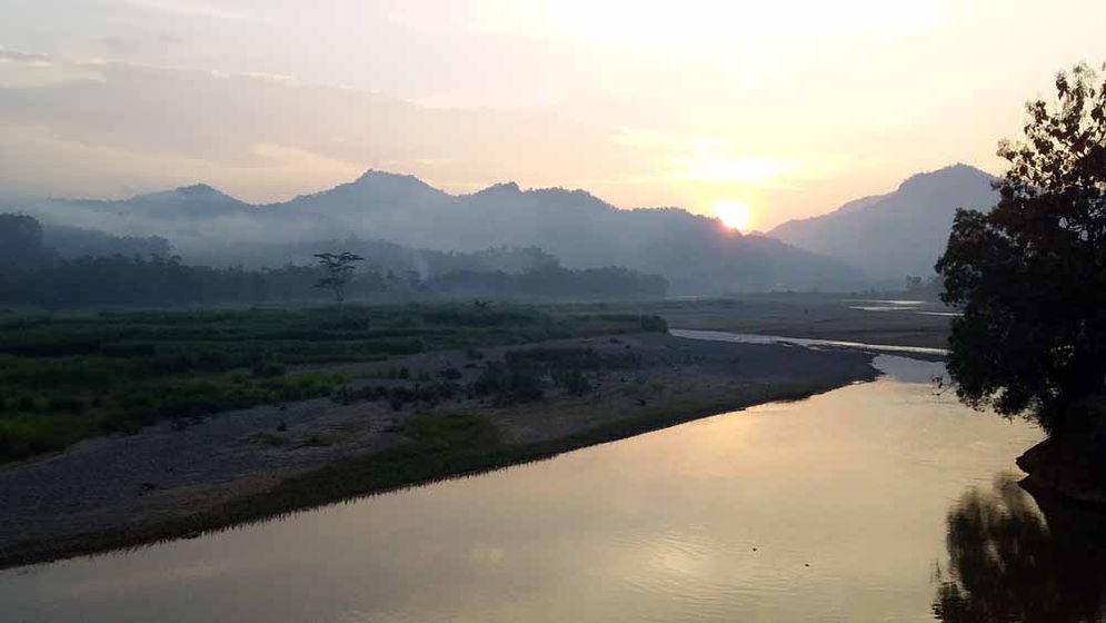 Sungai Grindulu di Desa Gunungsari Kecamatan Arjosari dan aktivitas petani di sepanjang aliran sungai.