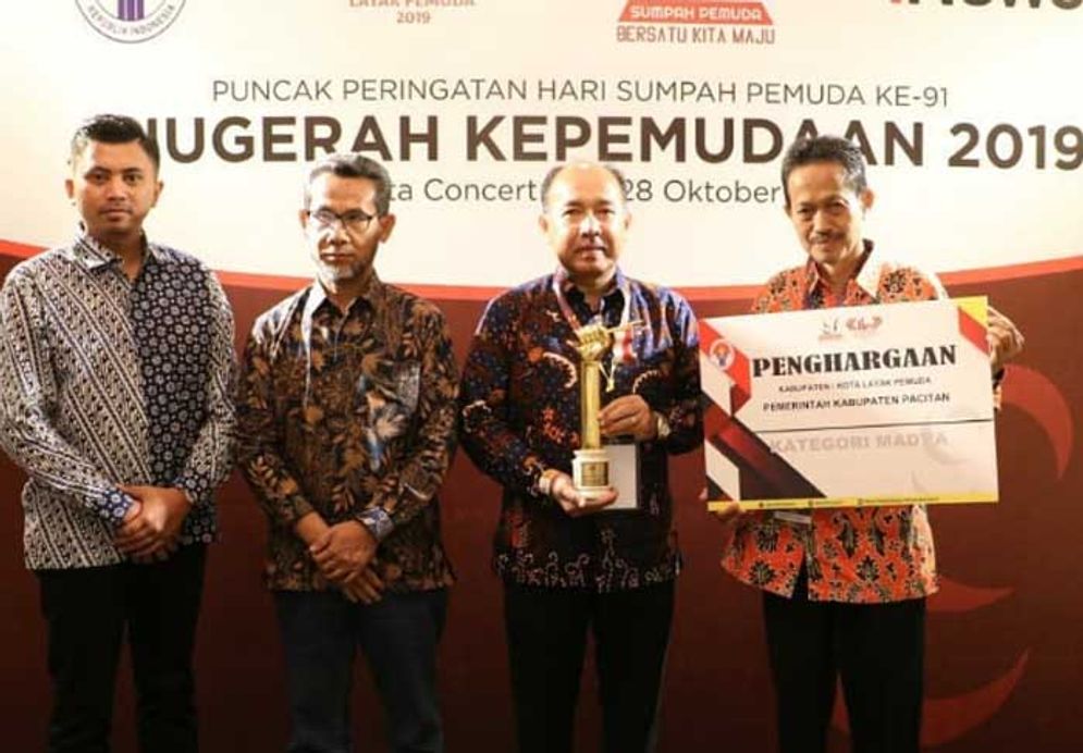 Dilansir dari @humaspacitan, Kabupaten 1001 Goa ini penghargaan sebagai Kabupaten Layak Pemuda Kategori Madya Tahun 2019. Penghargaan diserahkan langsung oleh Menteri Pemuda dan Olahraga Republik Indonesia, Zainudin Amali dan diterima langsung oleh Wakil Bupati Pacitan, Yudi Sumbogo.