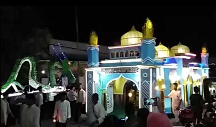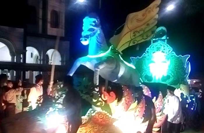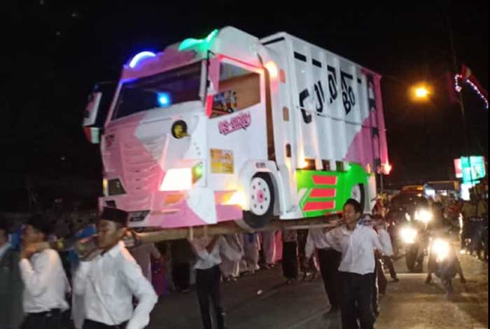 Tentu saja tidak sekadar menampilkan kreativitas, gemuruh takbir juga terus dikumandangkan dengan indah oleh peserta di sepanjang perjalanan. (Sigit Dedy Wijaya)