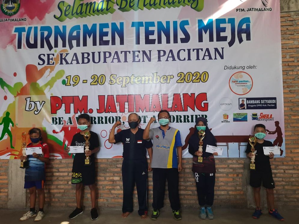 Perkumpulan Tenis Meja Jatimalang bersama Persatuan Tenis Meja Seluruh Indonesia (PTMSI) Kabupaten Pacitan dan halopacitan.com menggelar turnamen tenis meja se-Kabupaten Pacitan. Turnamen yang digelar Sabtu-Minggu (19 – 20/09/ 2020), mempertandingkan single perorangan kategori anak dan umum yang diikuti oleh wakil-wakil dari perkumpulan tenis meja yang ada di wilayah Pacitan.