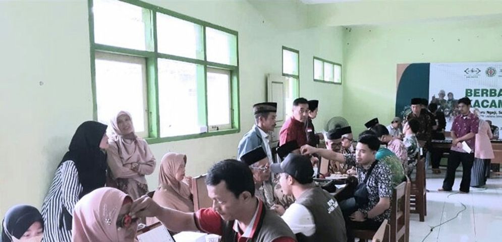 PACITAN - Menggandeng Ikatan Profesi Optometris Infonesia (Iropin), Pengurus Cabang Nahdlatul Ulama Kabupaten Pacitan melalui NU-Care LazisNU membagikan ratusan kacamata gratis kepada santri, duafa dan guru ngaji se-Kabupaten Pacitan.