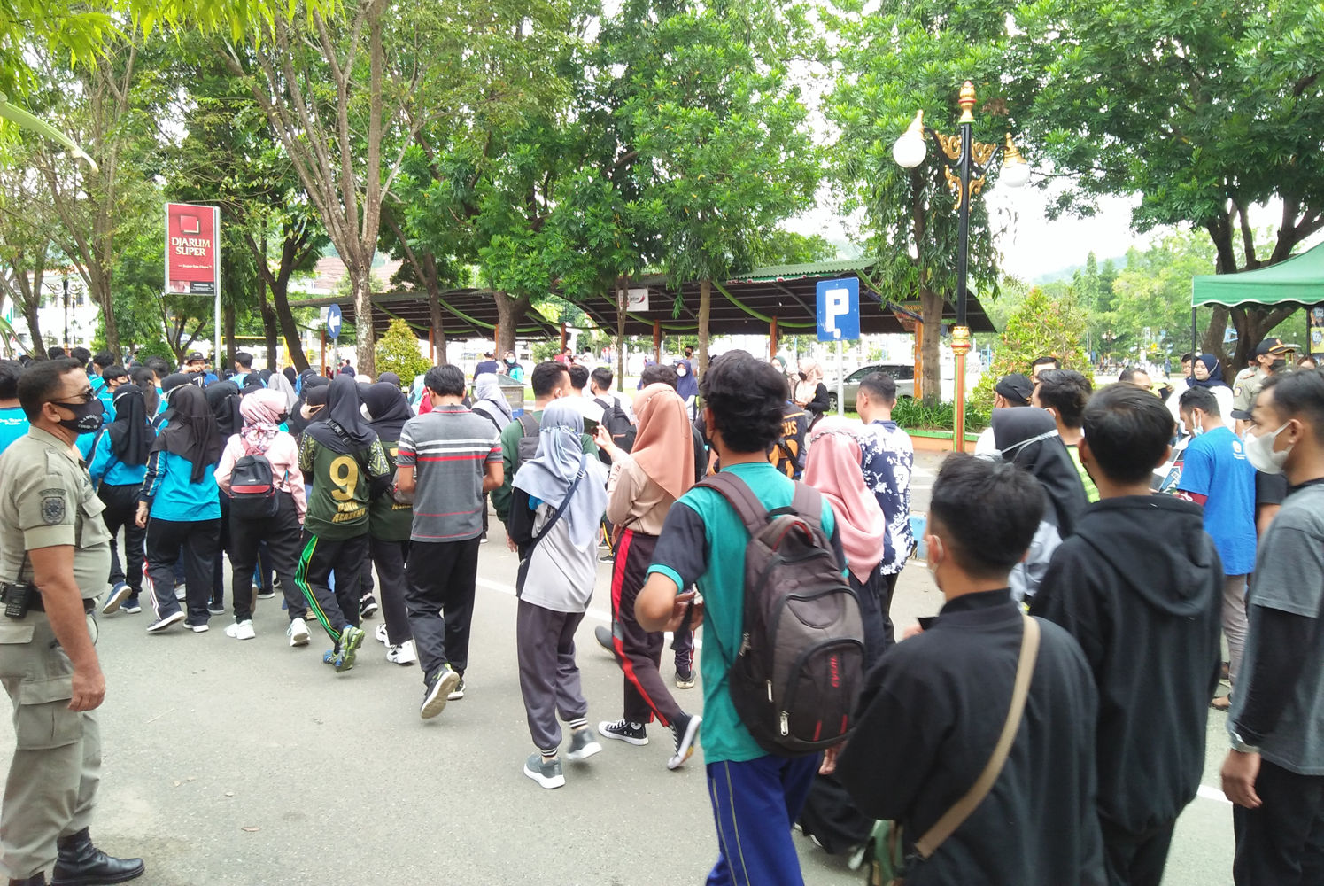 PACITAN- Ratusan pemudan dan remaja di Pacitan menggelar jalan sehat pada Minggu (13/02/2022). Jalan sehat yang diikuti pelajar SMA dan SMK tersebut sebagai salah satu bagian dari peringatan hari jadi ke-227 Kabupaten Pacitan.
