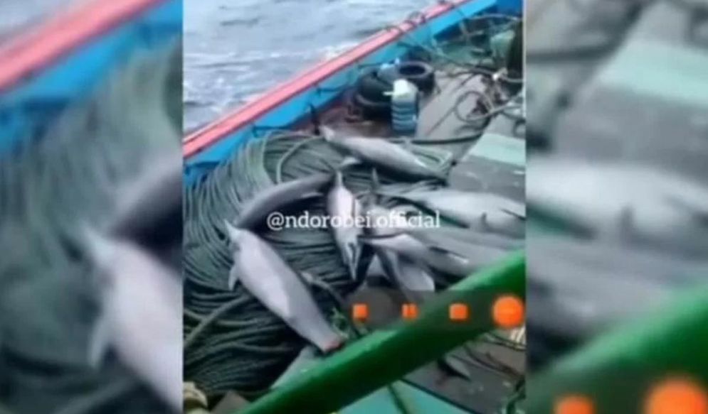 Dalam video amatir berdurasi 14 detik yang diduga diambil oleh juru mudi kapal itu bahkan ada satu ekor yang telah dipotong bagian buntut atau ekornya, sementara enam ekor lain lumba-lumba terlihat sudah tidak bergerak tergeletak di atas geladak kapal.