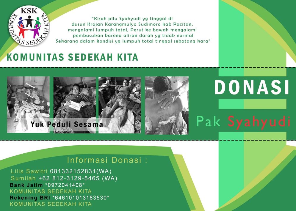 Komunitas Sedekah Kita (KSK) yang diprakarsai oleh Lilis Sawitri, S.Pd., seorang PNS di SMKN Ngadirojo ternyata tidak hanya peduli kanker tetapi juga peduli dhuafa dan yatim piatu. “KSK bertekad bagaimana memberikan makna bagi orang lain, mulai kegiatan sosial untuk membantu orang lain, membantu pengobatan pasien kanker yang pernah dilansir halopacitan (30/12/2019), mulai membantu dana maupun membantu mengantar ke rumah sakit baik di Pacitan maupun luar Pacitan. Selain itu kami juga memberikan santunan anak yatim dan dhuafa, memberikan biaya sekolah dan tempat tinggal, yang terangkum dalam program KSK diantaranya: (1) santunan (sembako) yatim & dhuafa; (2) biaya operasional sekolah yatim; (3) pegobatan pasien dhuafa; (4) anak-anak dan remaja cinta Quran; (5) kajian rutin bulanan; (6) peduli bencana; (7) BBM (Bersih-bersih masjid)”, tutur perempuan 48 tahun tersebut kepada halopacitan (30/12/2019).