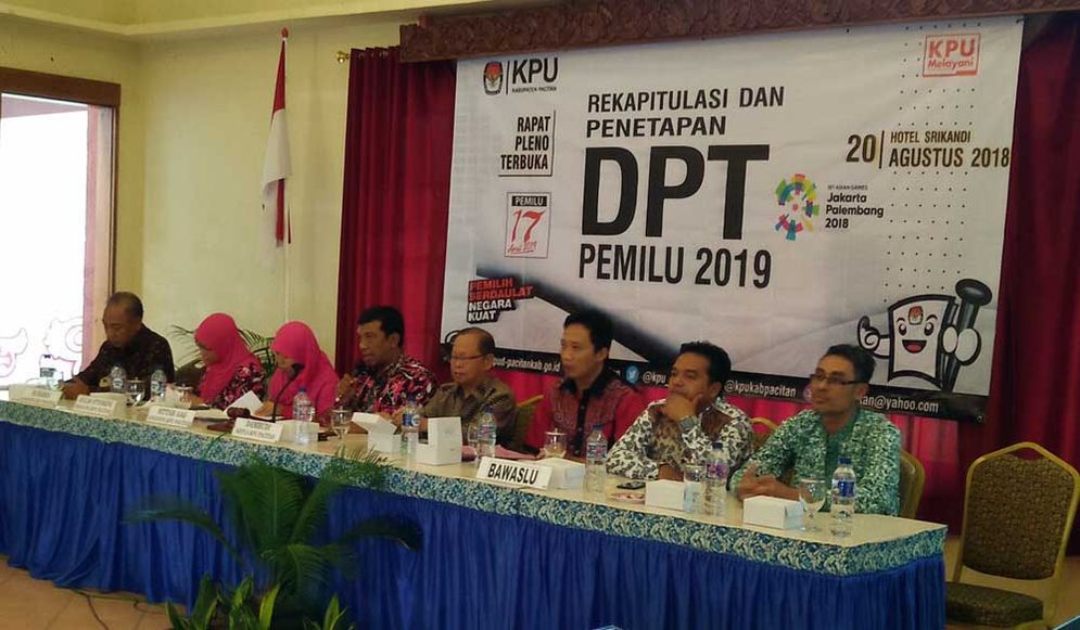 Halopacitan, Pacitan—Penetapan DPT dilakukan KPU Kabupaten Pacitan melalui rapat pleno yang digelar Senin, (20/08/2018) di Hotel Srikandi Pacitan.