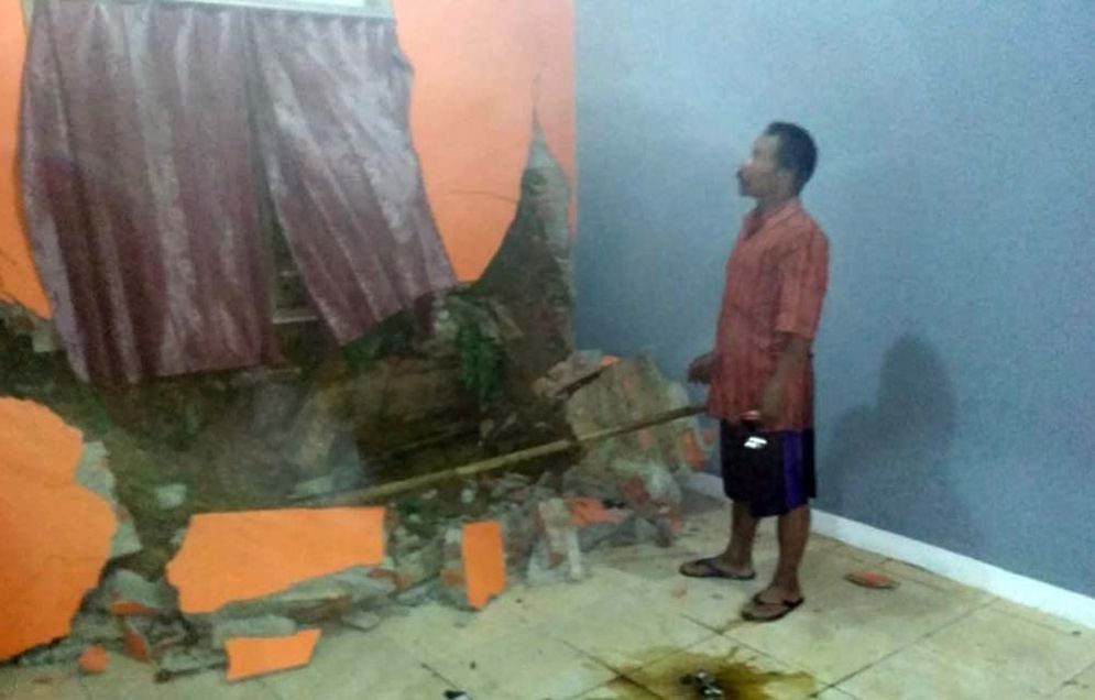 "Longsor tersebut menimpa rumah Bapak Satam yang mengakibatkan dinding rumahnya jebol," kata Subari, Rabu (40/01/2019) malam.