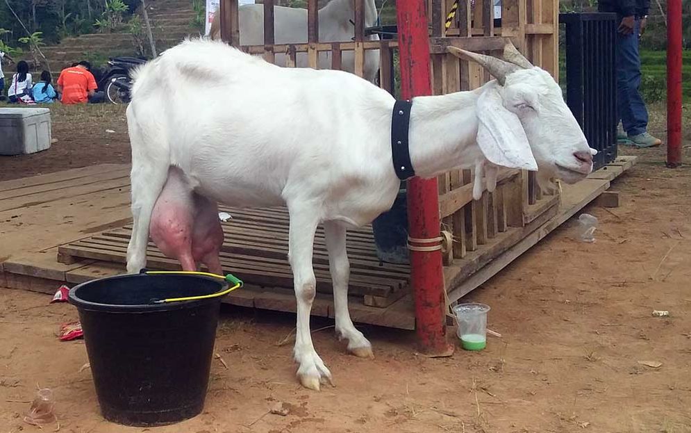 "Kalau kambing lainnya kan hasilnya tidak harian, kalau kambing perah ini susunya diperah dan langsung bisa dijual ke koperasi susu kambing dan kita beli dengan harga Rp15.000 per liter. Rata-rata setiap ekornya akan menghasilkan susu 1,5-2,5 liter per hari," katanya