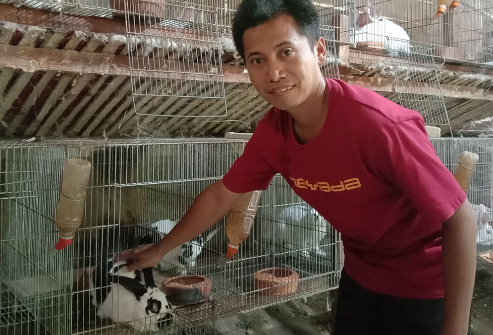 Untuk pakan kelinci, cukup diberi sayur-sayuran. Jadwal makannya pun tidak ada jam khusus, hanya sehari 3x. Saat ini Eko memiliki sekitar 15 kelinci pedaging dan 10 kelinci hias. Semuanya Eko pelihara di halaman belakang rumahnya.