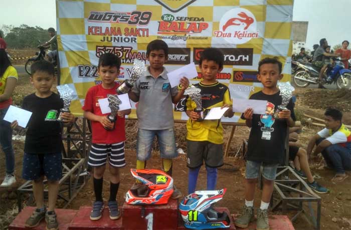 Crosser cilik asal Pacitan, yang turun di kelas 50 CC, Radhitya AW atau yang dikenal sebagai Pandu (9) berhasil finish di urutan ke-5 saat ikuti kejuaraan Grasstrack di Sirkuit Kelana Sakti, Tugu Jumantono, Karanganyar Minggu (14/10/2018).