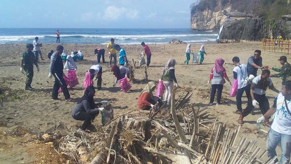 Halopacitan, Ngadirojo— Salah satu tempat yang diambil adalah Pantai Taman Desa Hadiwarno Kecamatan Ngadirojo. Hampir 200 orang dari berbagai elemen masyarakat terlibat dalam acara yang dimulai sekitar pukul 08.00 WIB tersebut.