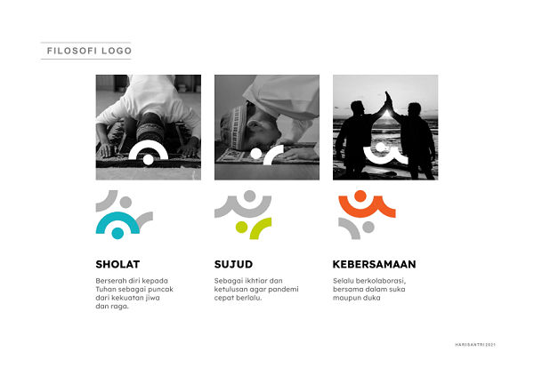 Adapun Filosofi Logo Hari Santri 2021 adalah Pertama, logo menggambarkan posisi sholat. Ini menggambarkan bahwa para kaum santri senantiasa berserah diri kepada Tuhan sebagai puncak dari kekuatan jiwa dan raga.